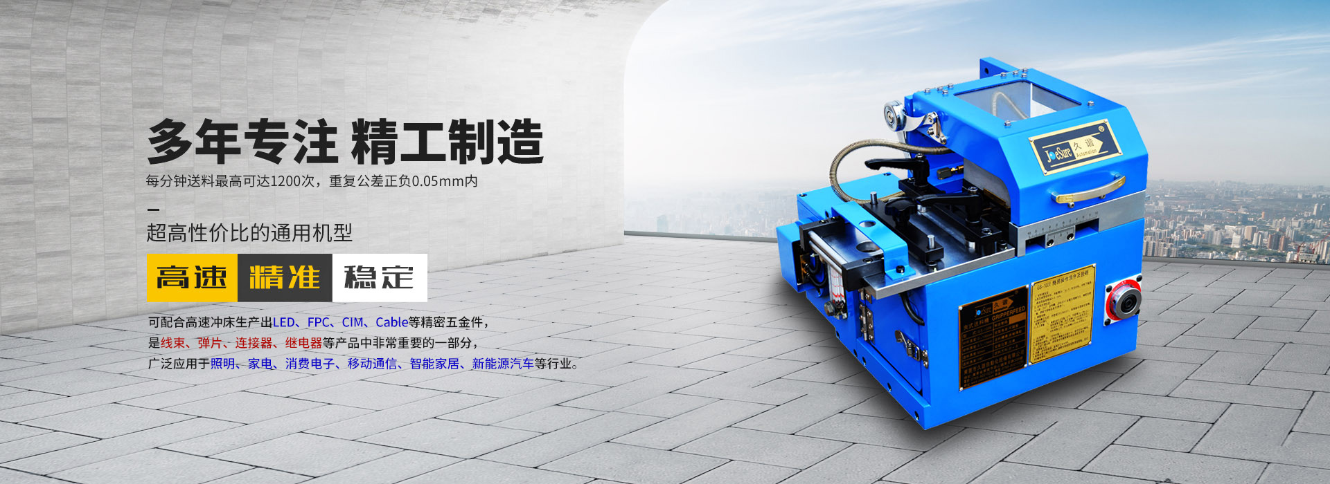 高速、精準、穩定:送料段數高達700spm/min,送料速度高達100m/min,重復公差±0.05mm內,采用日本進口電機及自主研發高性能控制系統,穩定性高;